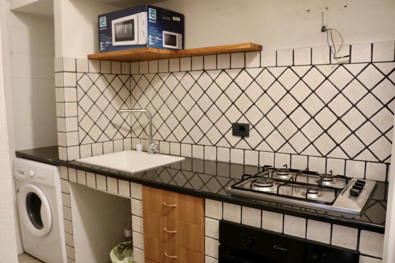 L’immobile è composto da: ingresso-soggiorno con cucina a vista, due camere da letto, bagno principale, tinello con annessa lavanderia e doppio servizio.